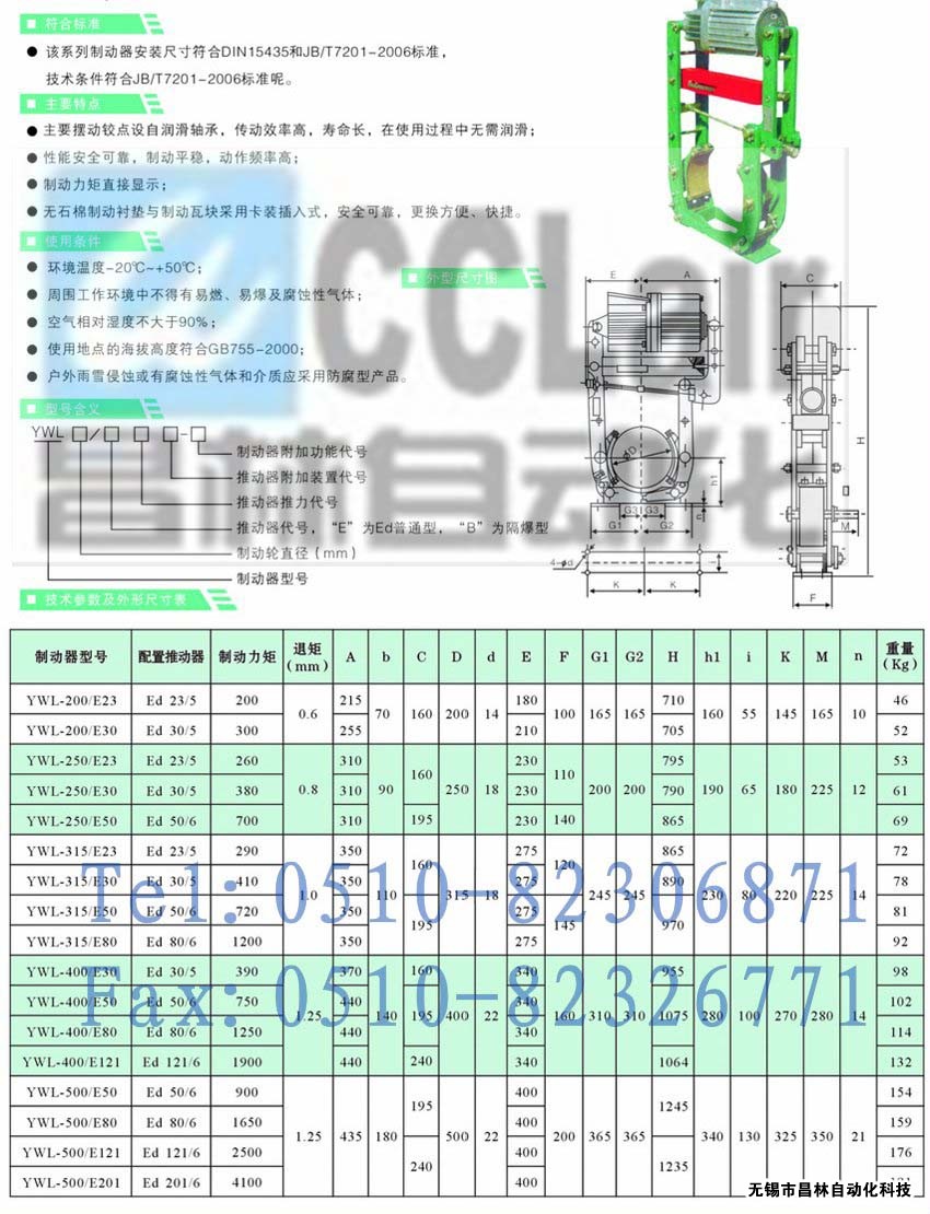 YWL-400/E30,YWL-400/E50,YWL-400/E80,YWL-400/E121液壓制動(dòng)器