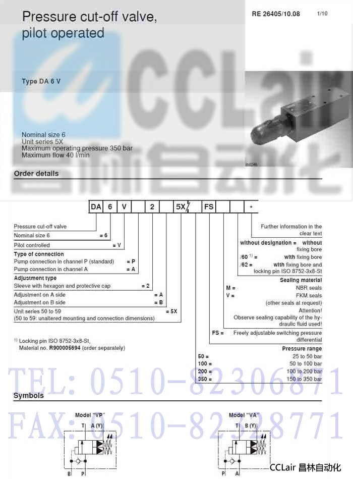 DA6VP2A5X/350FSM,DA6VP2A5X/350FSV,DA6VP2B5X/50FSM ,先導(dǎo)式壓力截止閥,力士樂REXROTH,德國力士樂