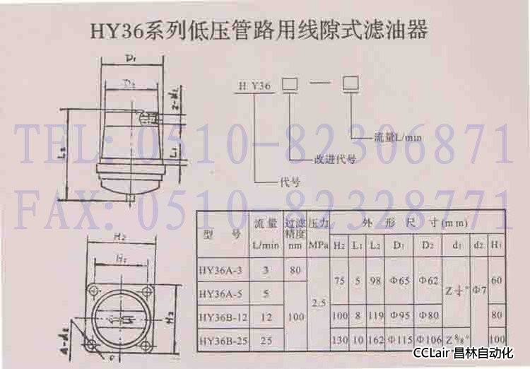HY36A-3,HY36A-5,HY36B-12,HY36B-25,低壓管路用線隙式濾油器