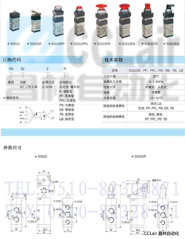 SG522,SG522R,SG522PP,SG522PPL,SG522PB,SG522TB,SG522EB,SG522LB,二位五通手控閥/機控閥 |