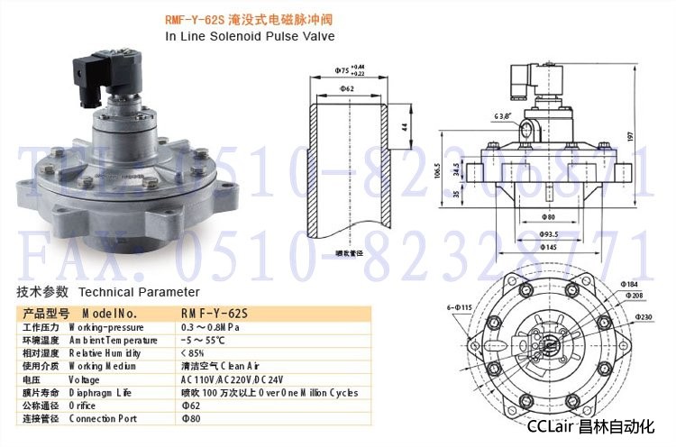 RMF-Y-62S,淹沒式電磁脈沖閥