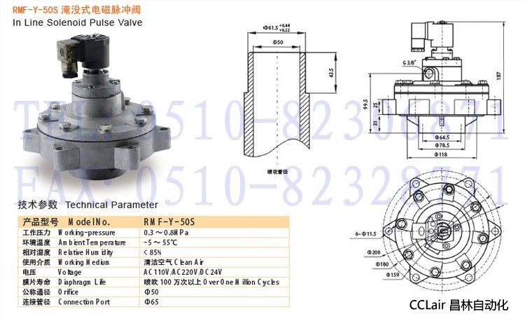 RMF-Y-50S,淹沒(méi)式電磁脈沖閥