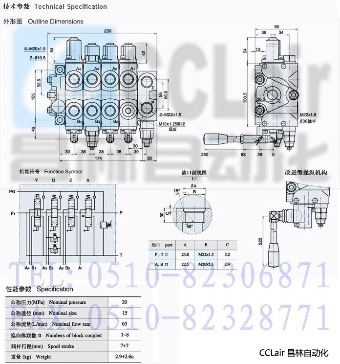 ★ 內(nèi)置單向閥:每聯(lián)換向體都有內(nèi)置單向閥,防止油液倒流