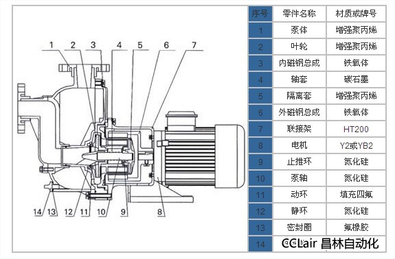 過(guò)流部件材質(zhì):PP(增強(qiáng)聚丙烯)、PVF2(聚偏二氟乙烯)