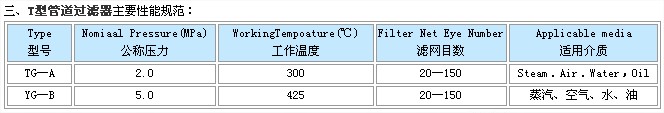 T型管道過(guò)濾器流通快速,故壓力損失小,抗污性強(qiáng)。排渣方便。A型表示角式.B表示直通式。