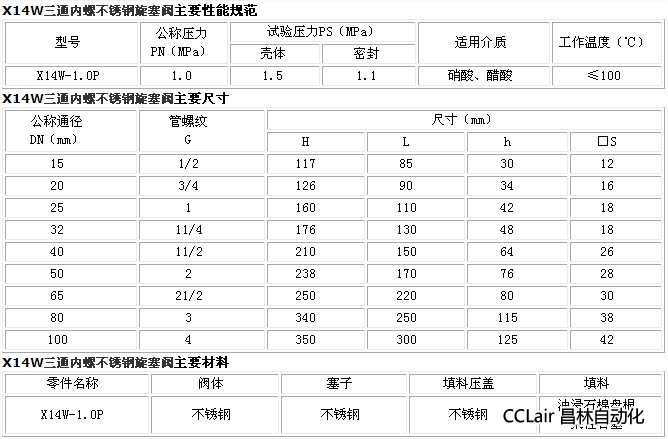 X14W-1.0P,三通內(nèi)螺不銹鋼旋塞閥