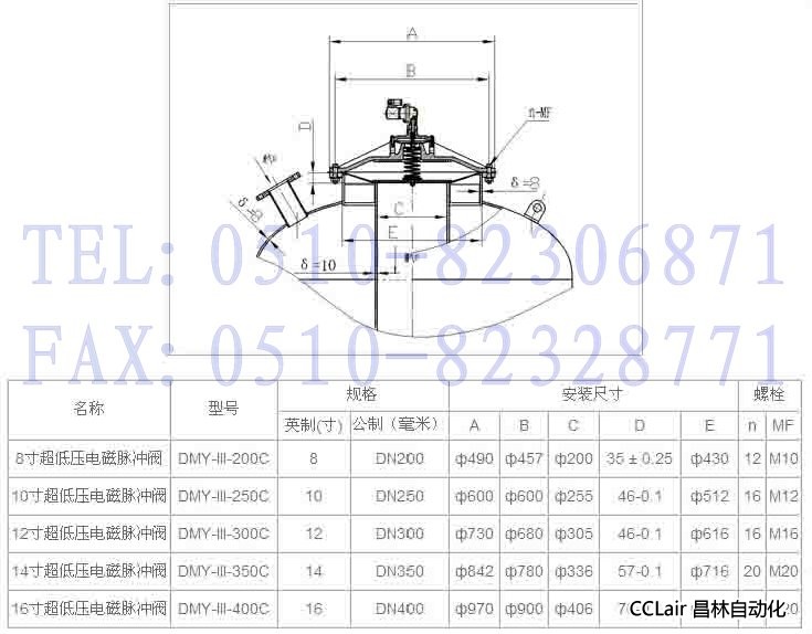 DMY-III-200C,DMY-III-250C,DMY-III-300C,DMY-III-350C,DMY-III-400C,電磁脈沖閥 |