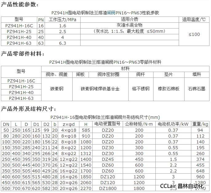 PZ941H-16C,PZ941H-25,PZ941H-40,PZ941H-63,電動(dòng)鋼制法蘭排渣閘閥