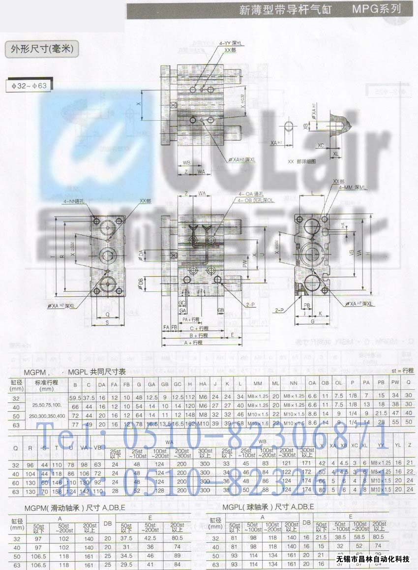 MGPL40TF-250,MGPL40TF-300,MGPL40TF-350,MGPL40TF-400,新薄型帶導桿氣缸,生產廠家,價格,