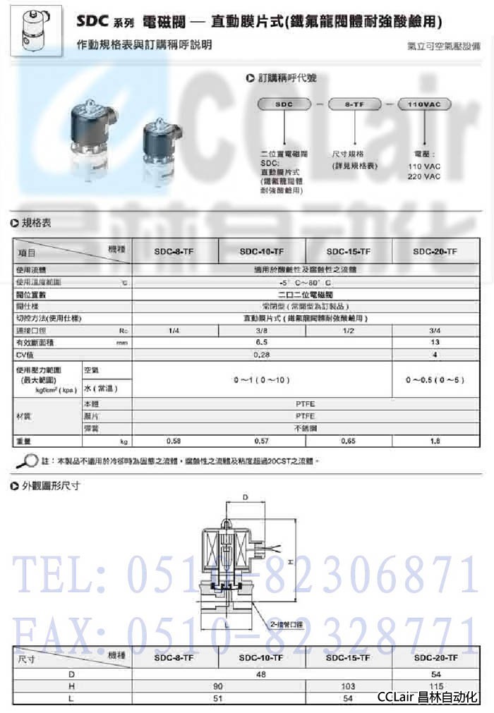 SDC-8-TF,SDC-10-TF,SDC-15-TF,SDC-20-TF,直動(dòng)膜片式電磁閥