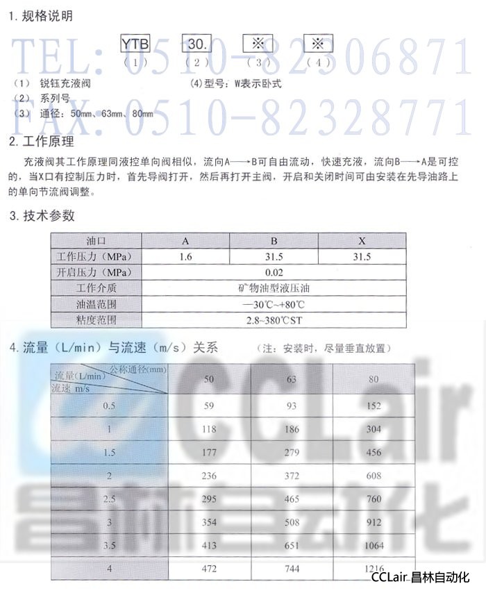 YTB30.50W, YTB30.63W, YTB30.80W, 充液閥