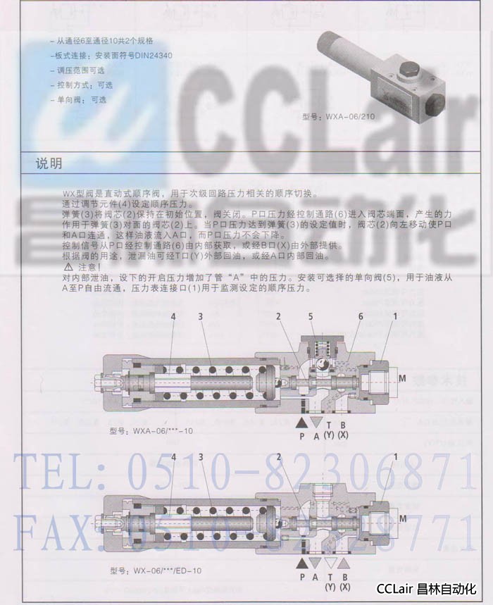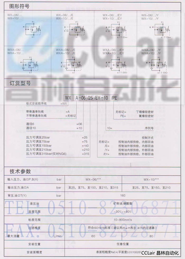WXA-06/25,WXA-06/75,WXA-06/150,WXA-06/210,WXA-06/315,板式順序閥