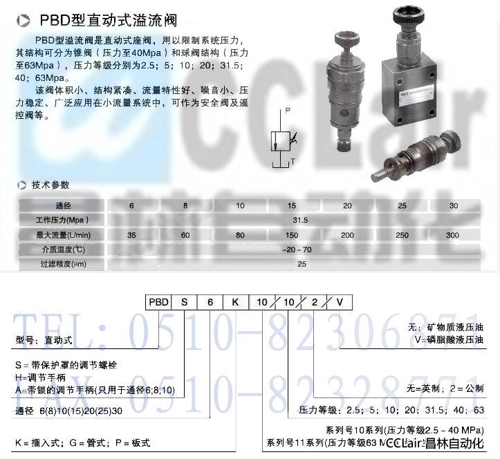 PBDS6K,PBDS6G,PBDS6P,PBDS8K,PBDS8G,PBDS8P,直動式溢流閥