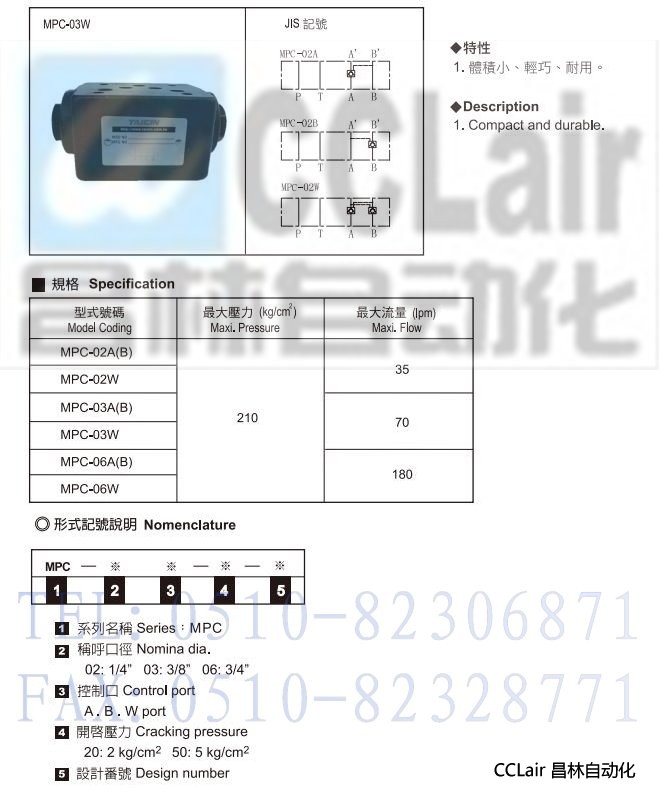 MPC-02A,MPC-02B,MPC-02W,MPC-03A,MPC-03B,MPC-03W,積層式引導止回閥
