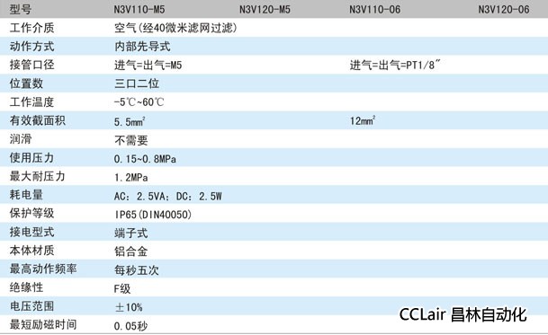 質為經過過濾干燥的清潔空氣、工作壓力為0.15~0.8MPa。N3V100系列電磁閥廣泛應用于氣動系統中,