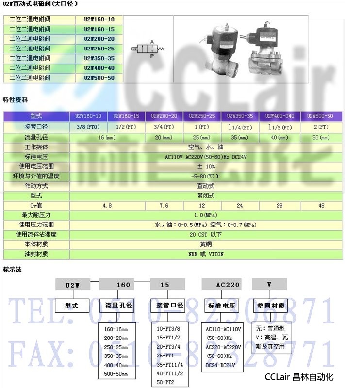 U2W160-10,U2W160-15,U2W200-20,U2W250-25,U2W350-35,U2W400-040,U2W500-50,二位二通電磁閥 |