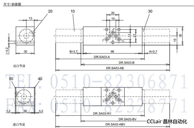DR.SA03-A,DR.SA03-AB,DR.SA03-B,DR.SA03-AV,疊加式單向節(jié)流閥