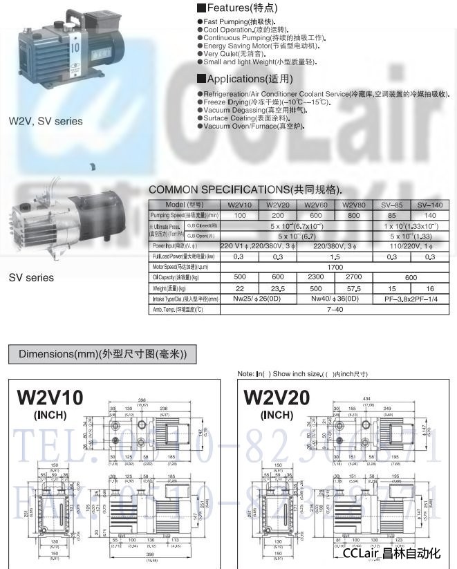 W2V10,W2V20,W2V60,W2V80,SV-85,SV-140,真空泵
