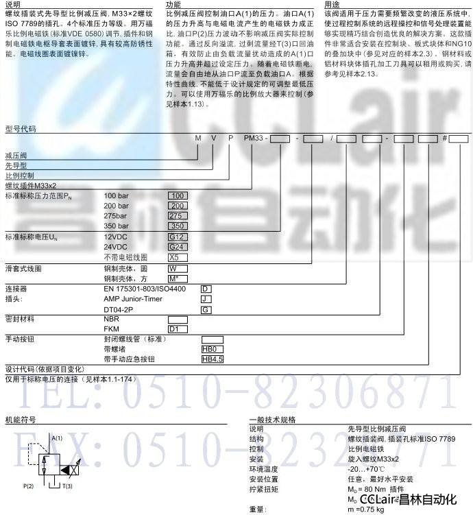 MVPPM33,先導式比例減壓插裝閥 (滑套式線圈)