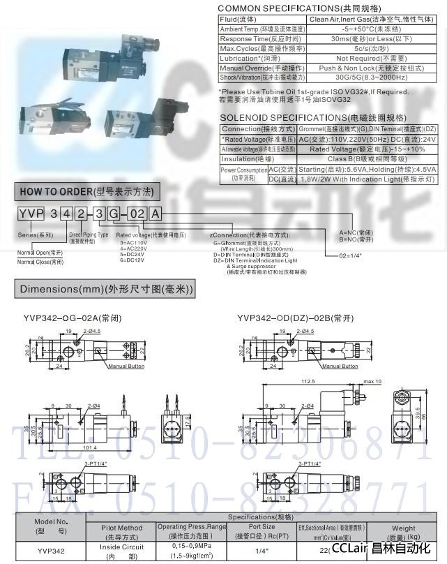 YVP342,YVP342-3G-02A,YVP342-4D-02B,3通先導型電磁閥