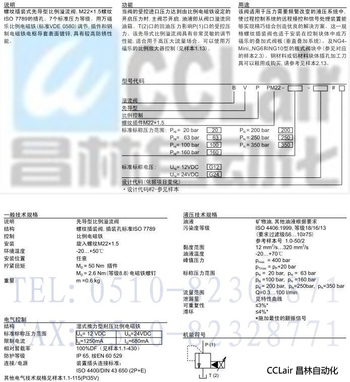 BVPPM22,先導(dǎo)式比例壓力溢流插裝閥