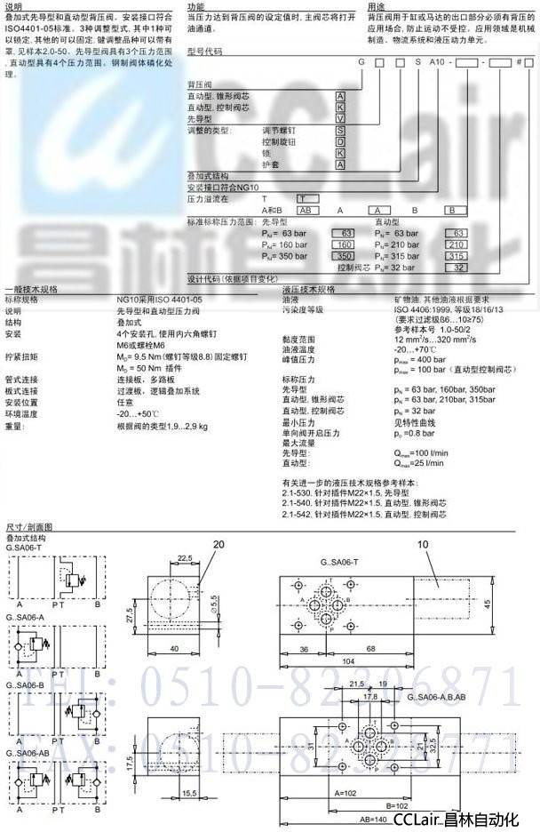G.SA10-T,G.SA10-A,G.SA10-B,G.SA10-AB,先導(dǎo)式/直動(dòng)式背壓閥疊加式結(jié)構(gòu)