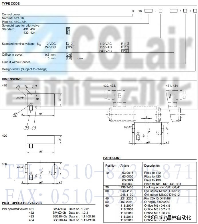 D16431M,D16433S,帶檢驗(yàn)功能的2位2通插裝閥