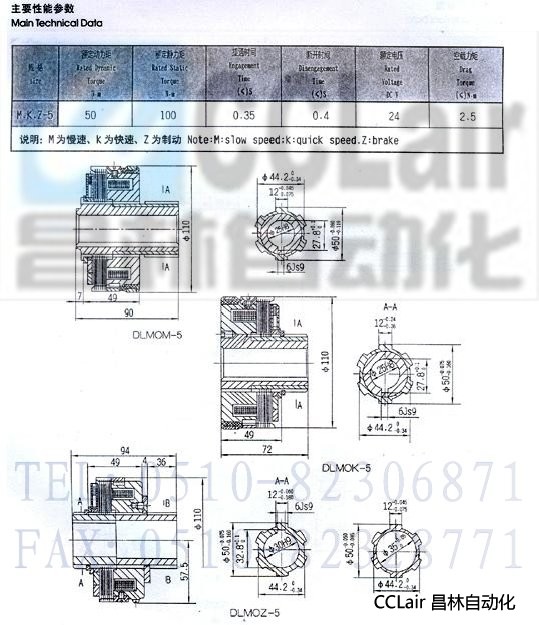 DLM0M-5,DLM0K-5,DLM0Z-5,銑床專用離合(制動)器