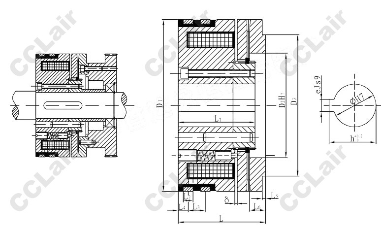 離合器主要由磁軛 ,銜鐵、齒環(huán)和電刷組成,磁軛內(nèi)裝有線圈,線圈引出線分別與兩個滑環(huán)相焊接,導電是由電刷壓緊滑環(huán)來完成,磁 與線圈和磁 與滑環(huán)均由絕緣良好的環(huán)氧樹脂澆注。磁軛體內(nèi)磁極端面上,有多個均布的彈簧和頂子。齒輪套也與磁 體相聯(lián),帶端面齒的齒環(huán)可與用戶的傳動部分相聯(lián)接。