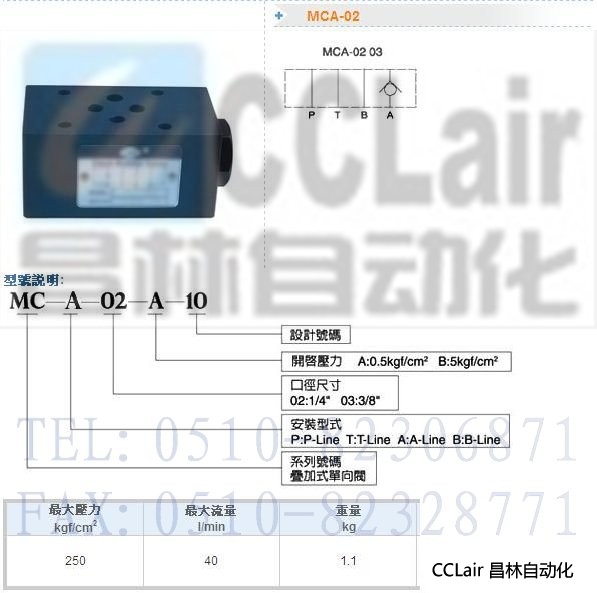 MCA-02-A-10,MCA-02-B-10,疊加式單向閥
