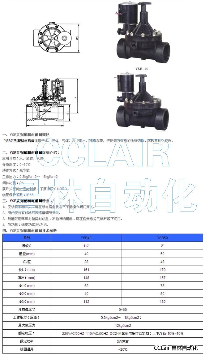 YSB40,YSB50,塑料電磁閥,G1〞~G2〞