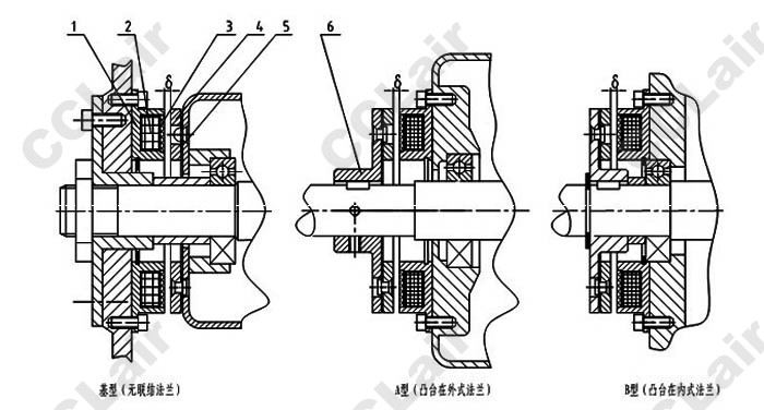 3、 制動器主、從動側(cè)需固定,不允許軸向竄動,同時保證工作氣隙“δ”。