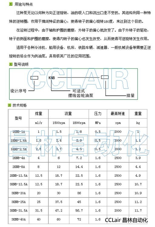 1KNB-1A,1KNB-1.6A,1KNB-2.5A,可逆式擺線齒輪油泵