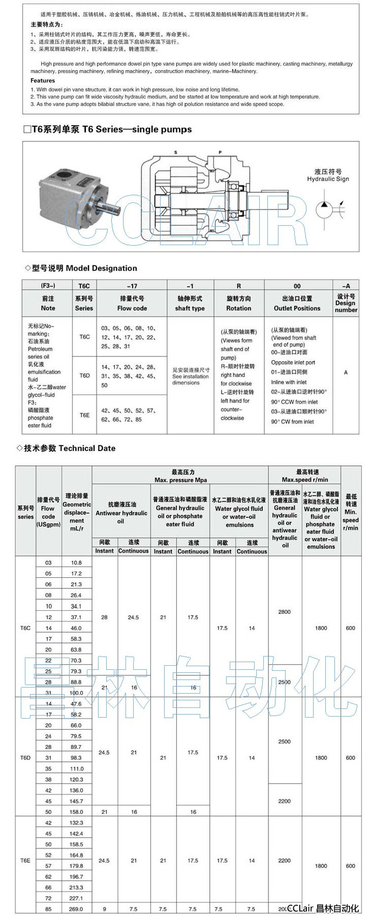 T6C-17-1R02-B1,T6C-17-2R02-B1,T6C-17-1L02-B1,單聯(lián)葉片泵