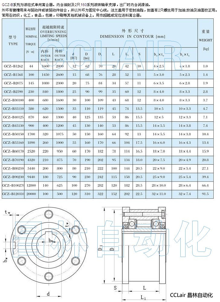 GCZ-B1262,GCZ-B1568,GCZ-B2075,GCZ-B2590,單向離合器