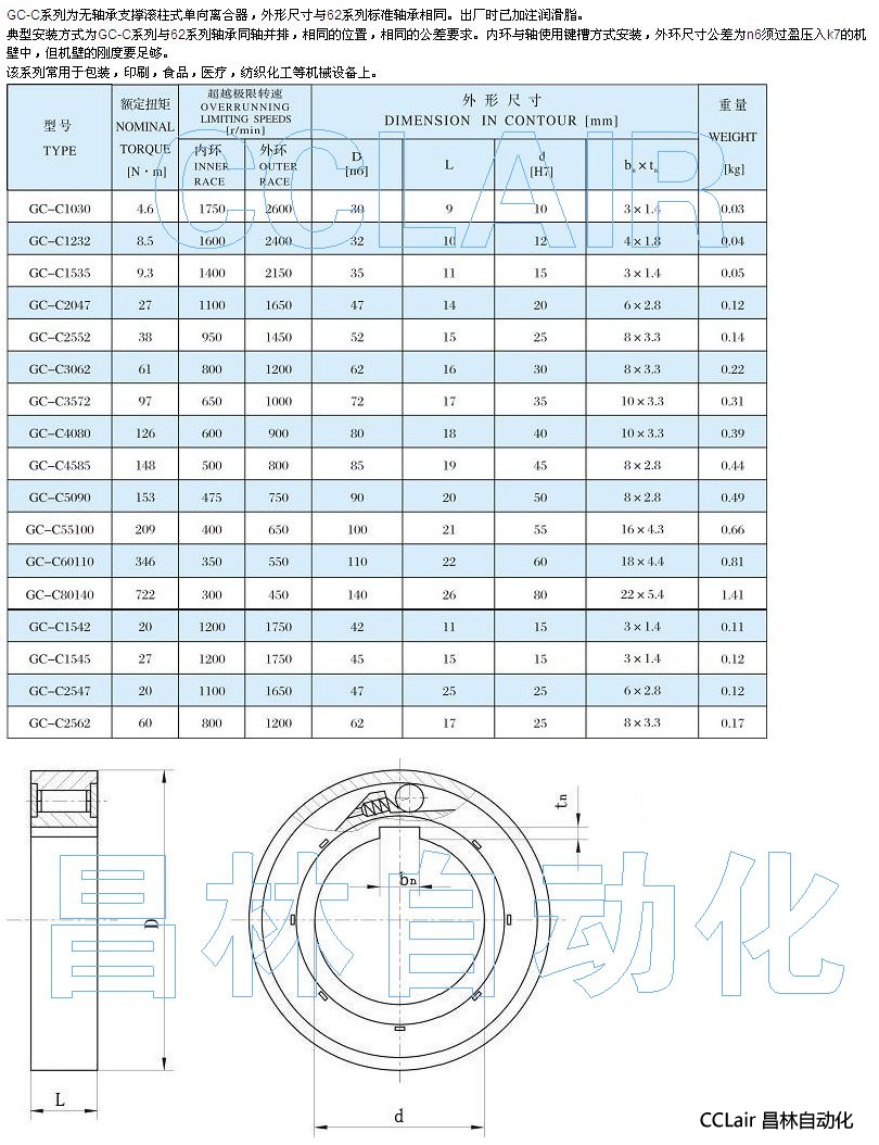 GC-C1030,GC-C1232,GC-C1535,GC-C2047,單向離合器