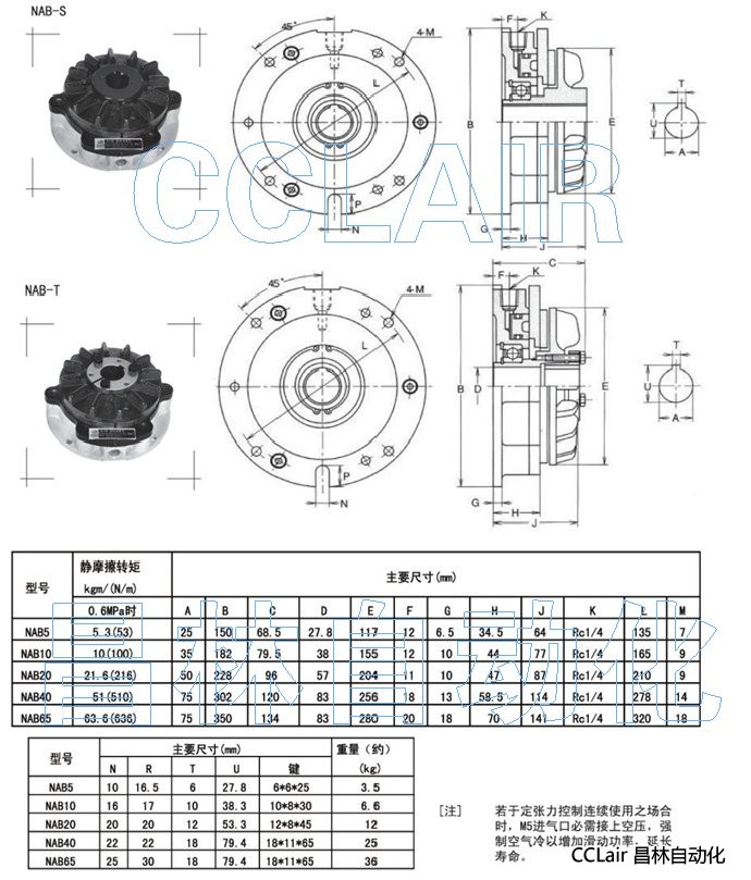 NAB5,NAB10,NAB20,NAB40,NAB65,(標準型)空壓通軸式離合器
