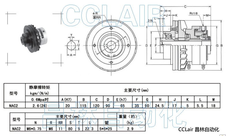 NAC2,(微型)空壓通軸式離合器