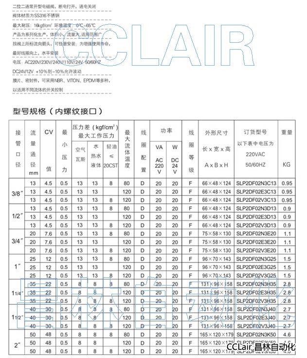 SLP2DF02N3C13,SLP2DF02E3C13,不銹鋼二位二通電磁閥(常開型)
