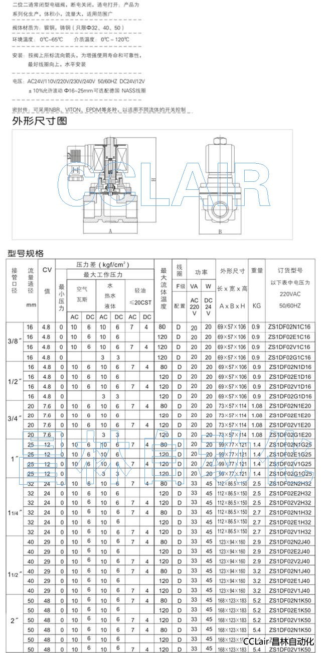 ZS1DF02V2H32,ZS1DF02N1H32,二位二通大口徑直動式(銅)電磁閥(常閉型)
