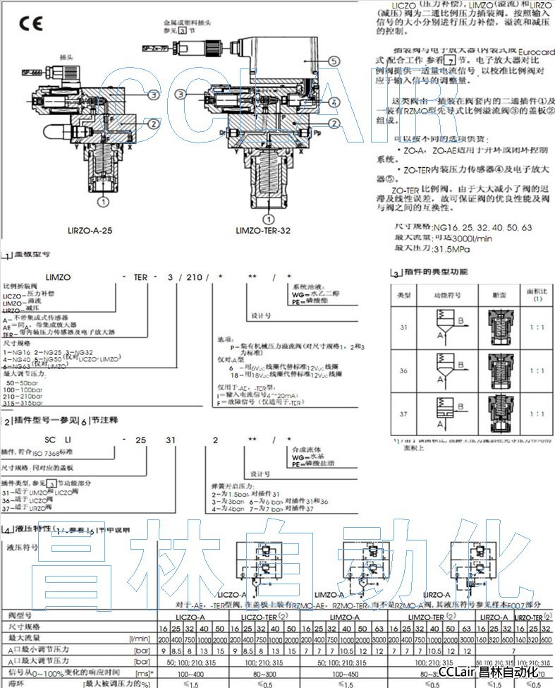 LICZO-A-1/50,LICZO-A-1/100,LICZO-A-1/210,LICZO-A-1/315,比例壓力插裝閥