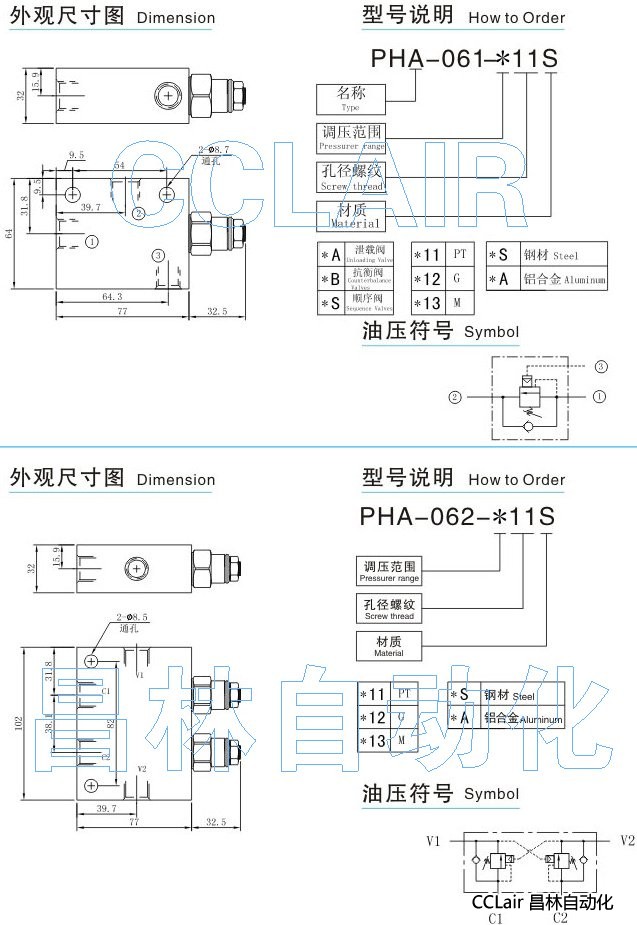 PHA-061,PHB-061,PHS-061,PHA-062,配管式卸載閥