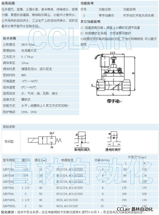LD6715A,LD6720A,LD6725A,LD6740A,LD6750A,LD6740SL,LD6750SL,噴灌塑料電磁閥