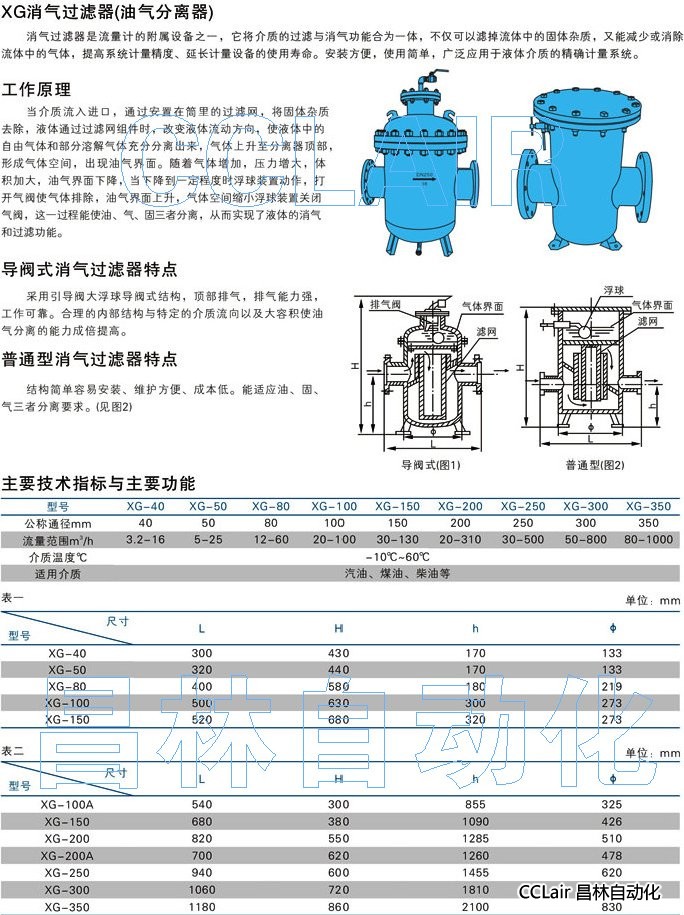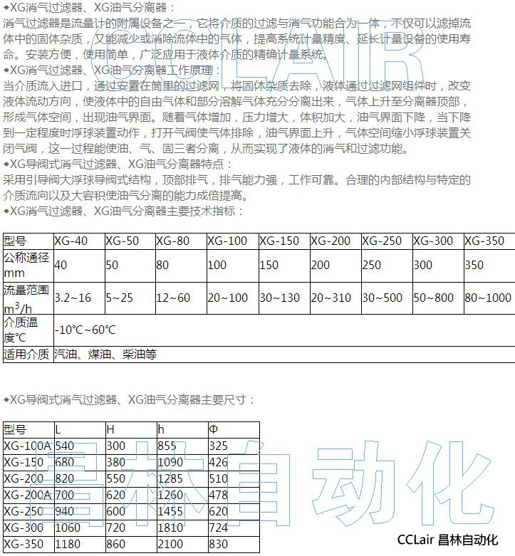 XG-40,XG-50,XG-80,XG-100,XG-150,XG-200,XG-250,XG-300,消氣過濾器 |