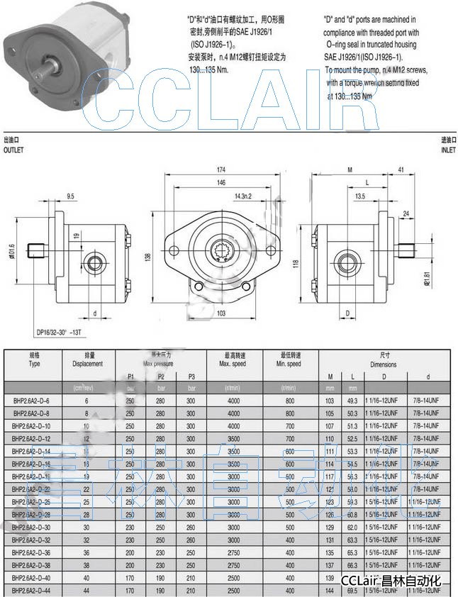 BHP2.6A2-D-6,BHP2.6A2-D-8,BHP2.6A2-D-10,BHP2.6A2-D-12,齒輪泵
