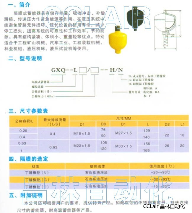 GXQ-L0.25/P-A-N,GXQ-L0.4/P-A-N,GXQ-L0.63/P-A-N,GXQ-L1/P-A-N,隔膜式蓄能器
