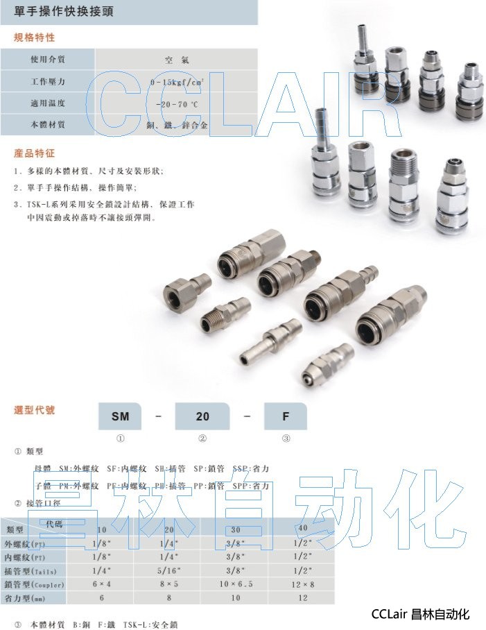 SF-20,SF-30,SF-40,SM-20,SM-30,SM-40,SH-20,SH-30,SH-40,SP-20,SP-30,SP-40,單手操作快換接頭