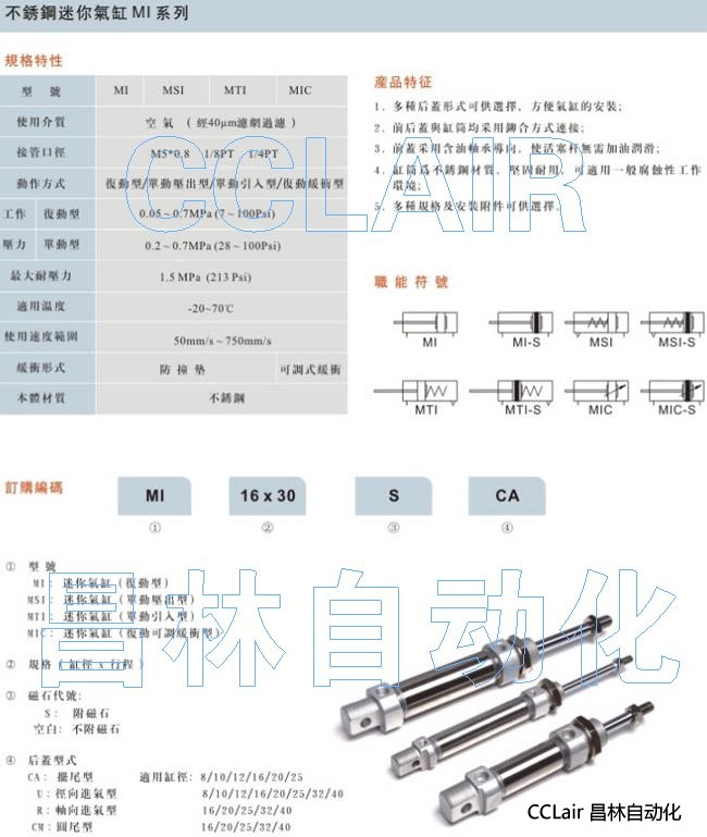 MI-20X10,MSI-20X15,MTI-20X20,MIC-20X25,MI-20X30,MSI-20X40,不銹鋼迷你氣缸