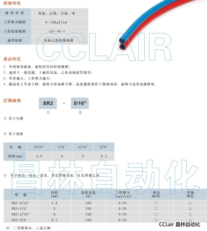 SR2-3/16,SR2-1/4,SR2-5/16,SR2-3/8,氧氣乙炔雙管