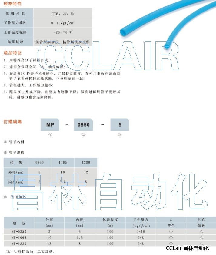 MP-0850-5,MP-1065-5,MP-1280-5,高分子管MP管
